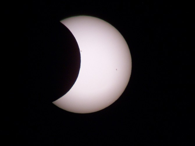 夹缝中观测,5.21秦皇岛日偏食,两次月掩黑子。。。 |