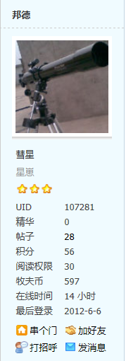 超超燃 发表于 2012-6-6 20:15 登录/注册后可看大图 幽浮~~给你介绍个学弟~~今天跟我们一路去观测的,他明年也要高考了~~