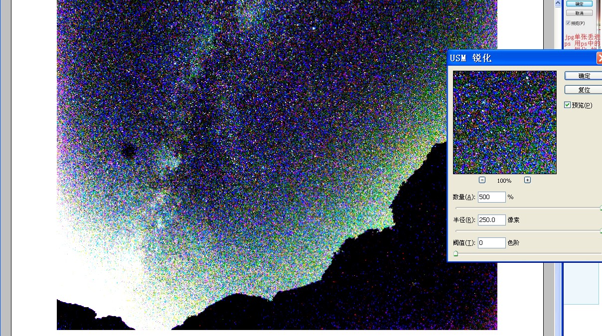 急速流星 发表于 2014-3-5 17:45 usm锐化有3条进度条 你把第一条往回调一下 中间那条才是关键