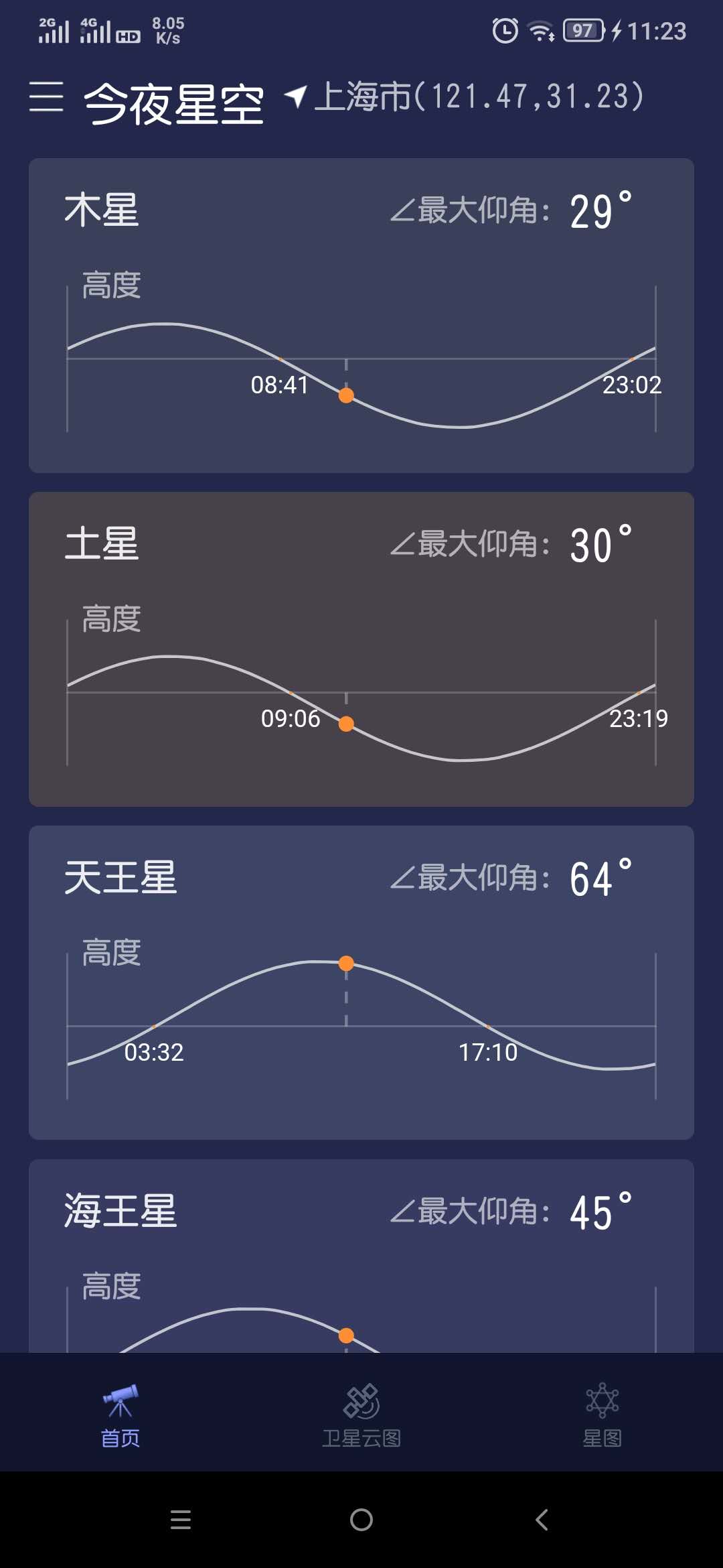 mayapple 发表于 2020-5-26 11:00 晴天钟、天文通这两个APP能满足你的大部分要求,如果看详细的星图最好还是用PC版的Stellarium一类的星图软 ...